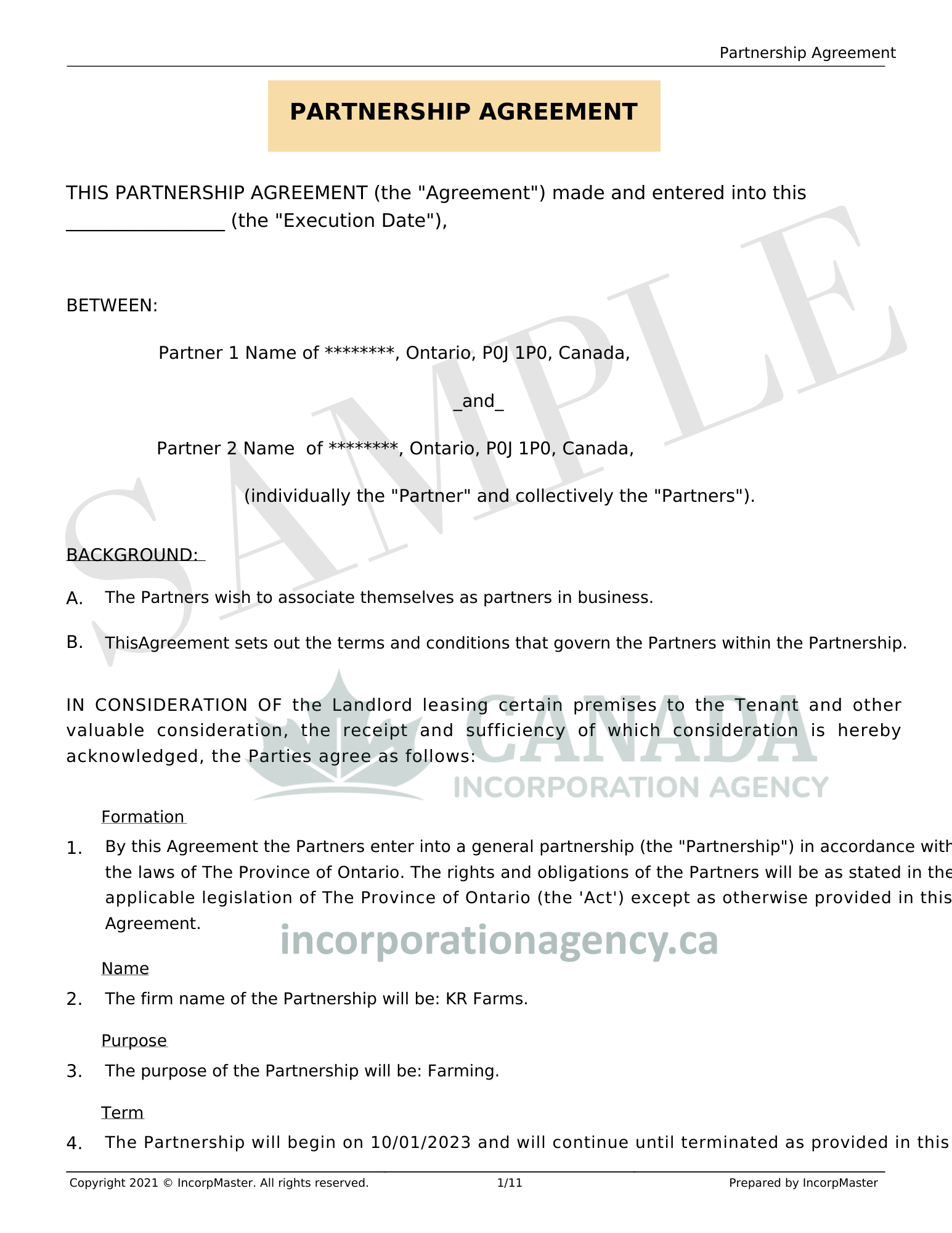 A Partnership Agreement outlines each partner’s roles, capital contributions, profit-sharing ratios, decision-making authority, and procedures for resolving disputes or exiting the partnership. It helps avoid misunderstandings and legal issues down the line.