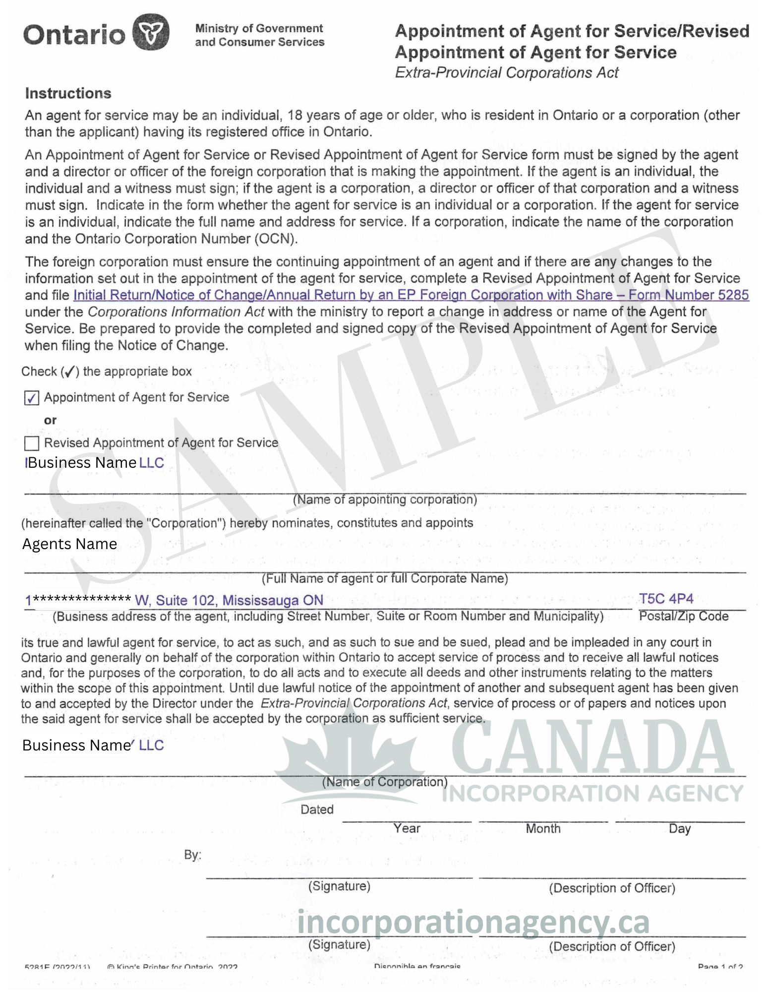 - We act as your official agent in Ontario, Alberta, British Columbia, and other provinces, as well as for federal corporations across Canada.