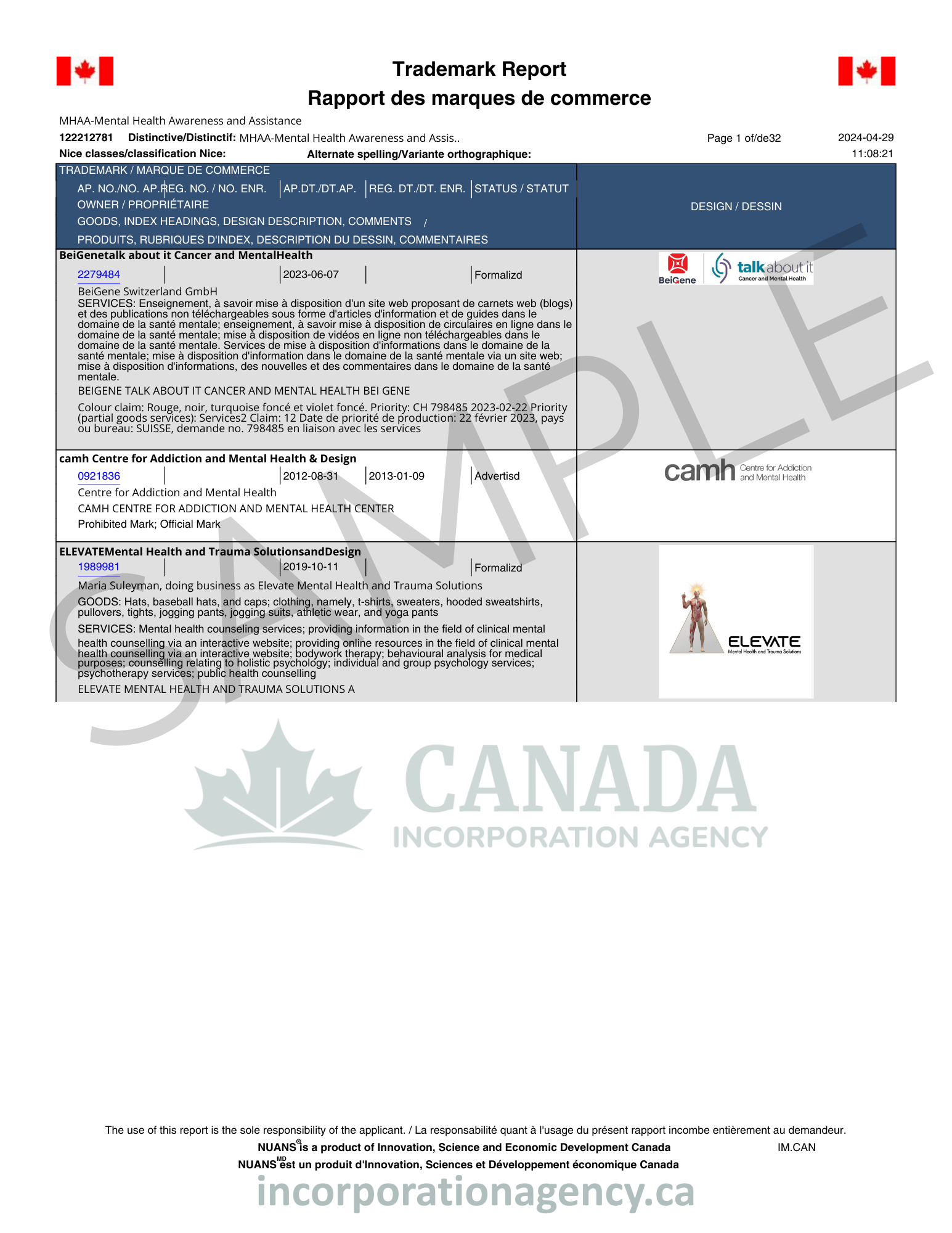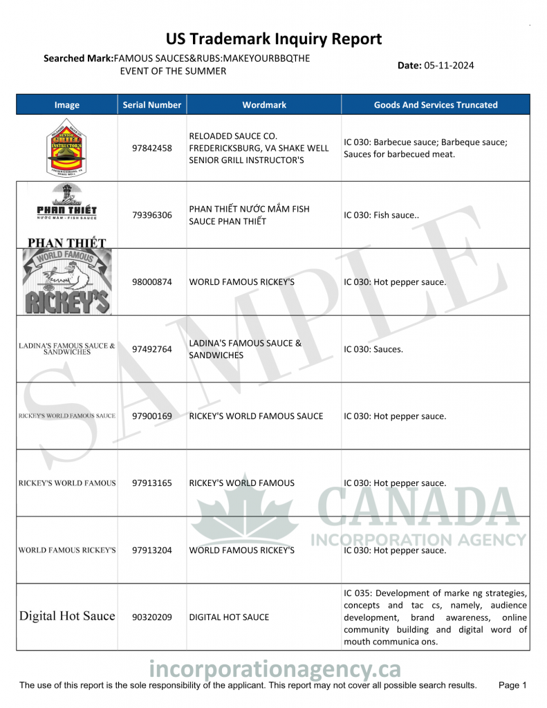 Canada Trademark Search Report