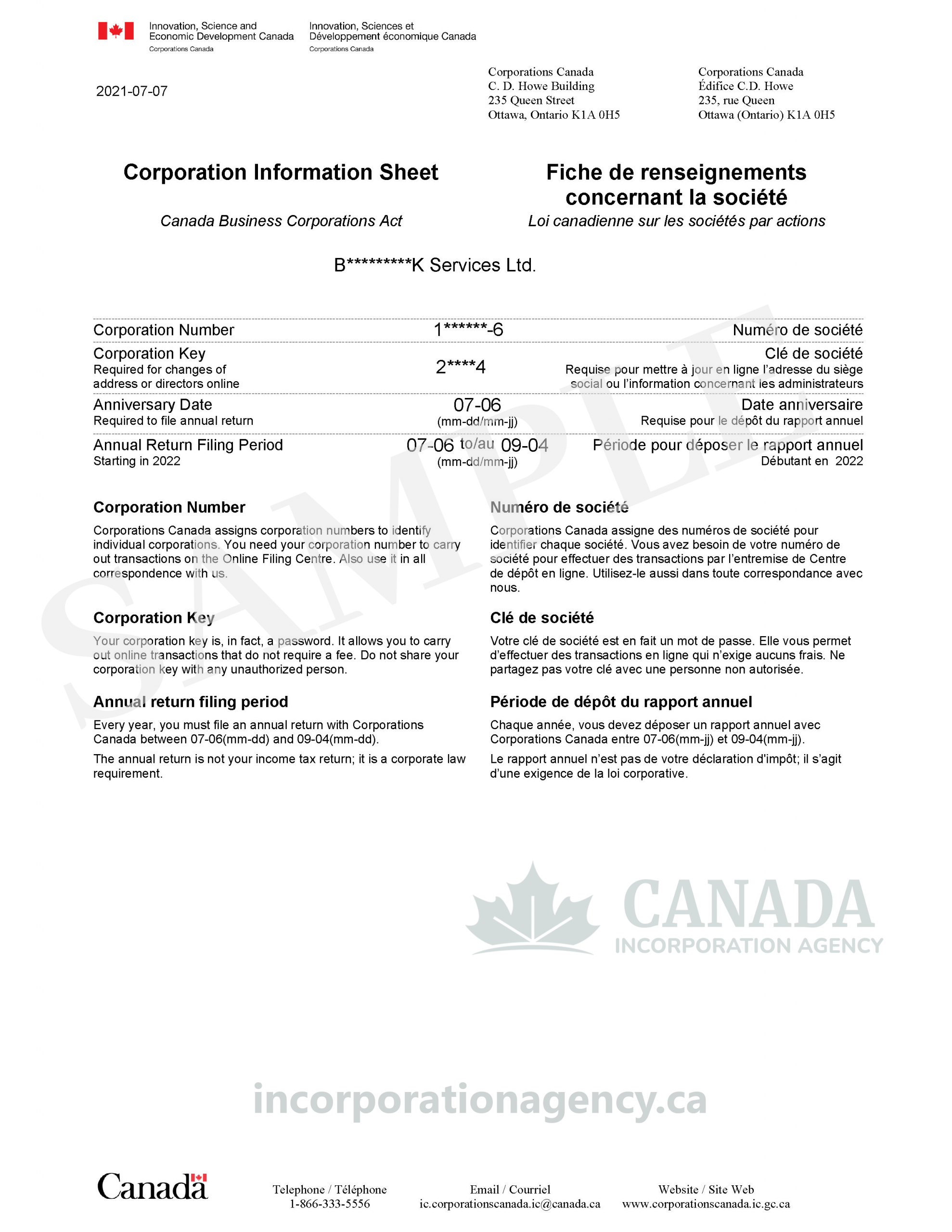 - Essential for Federal Filings – Required for annual returns, director or address updates, and other corporate changes under Canada Business Corporations Act.