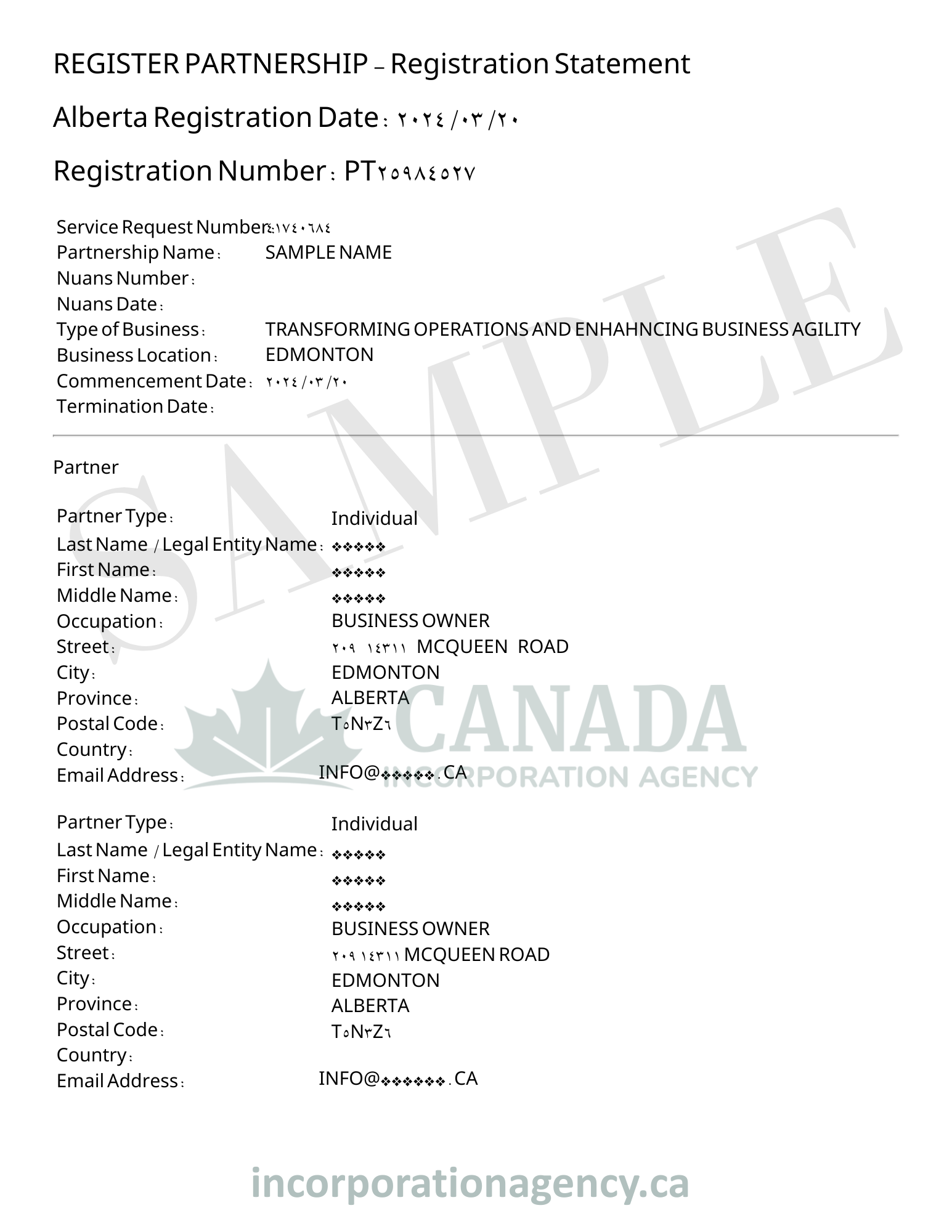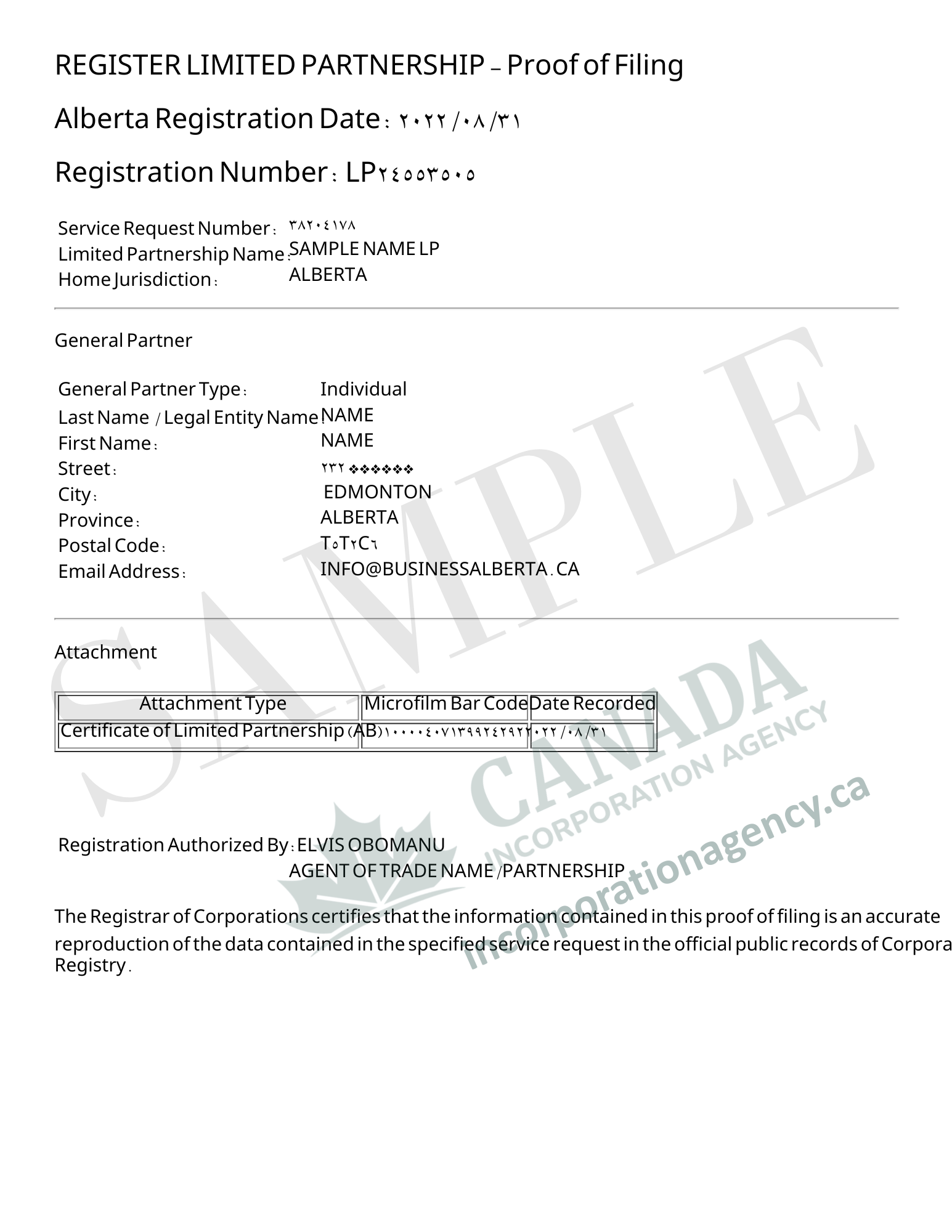 ALBERTA GENERAL PARTNERSHIP REGISTRATION
