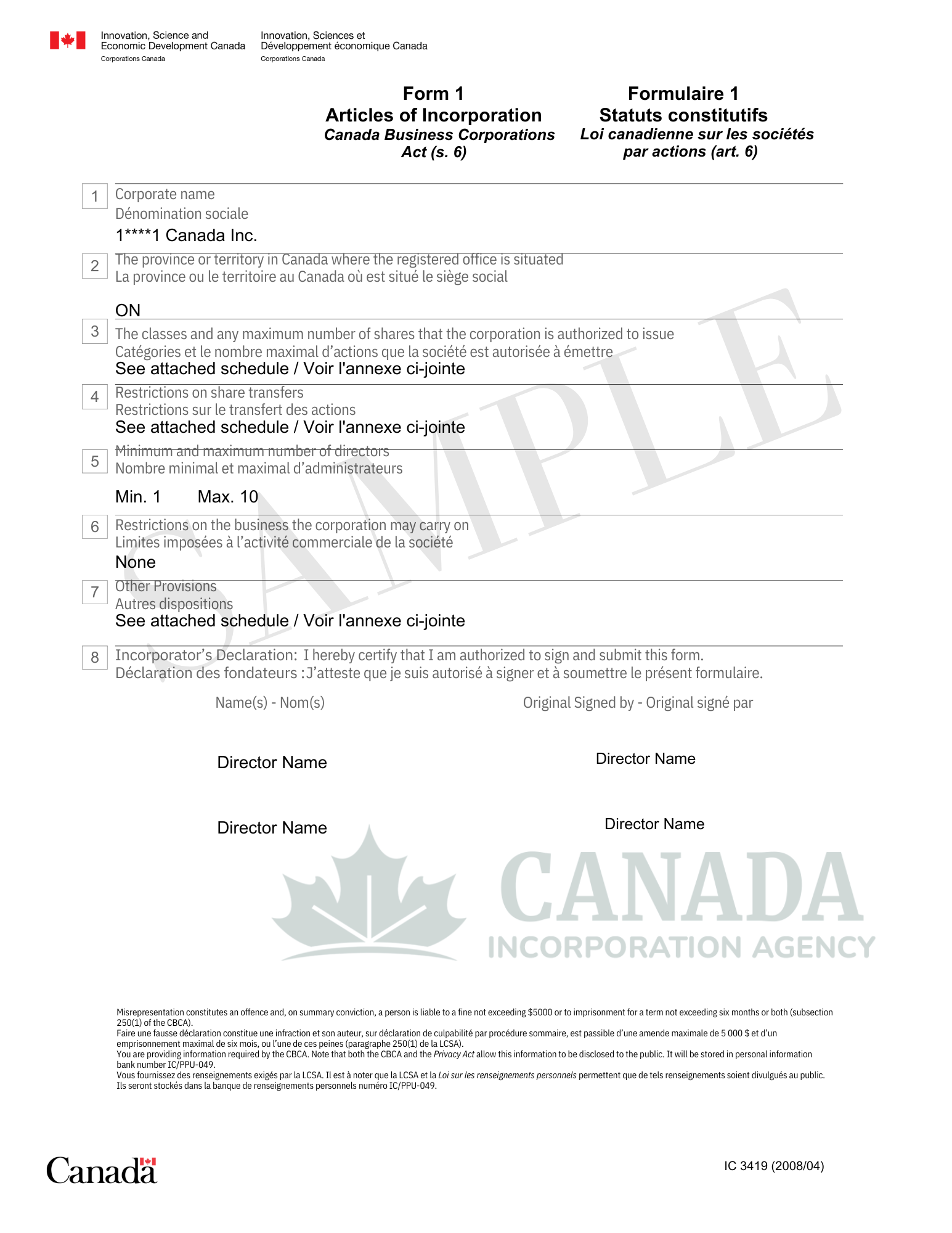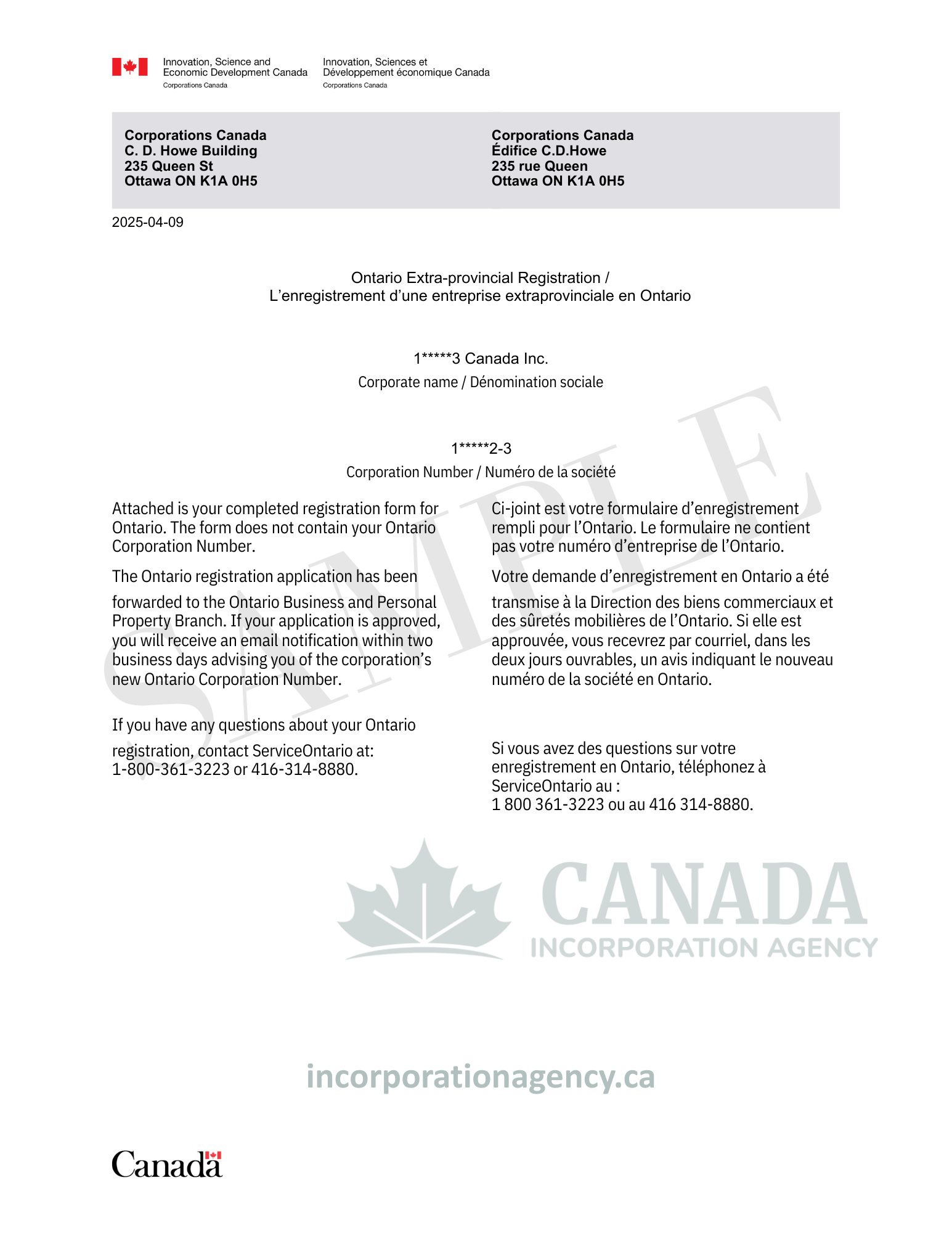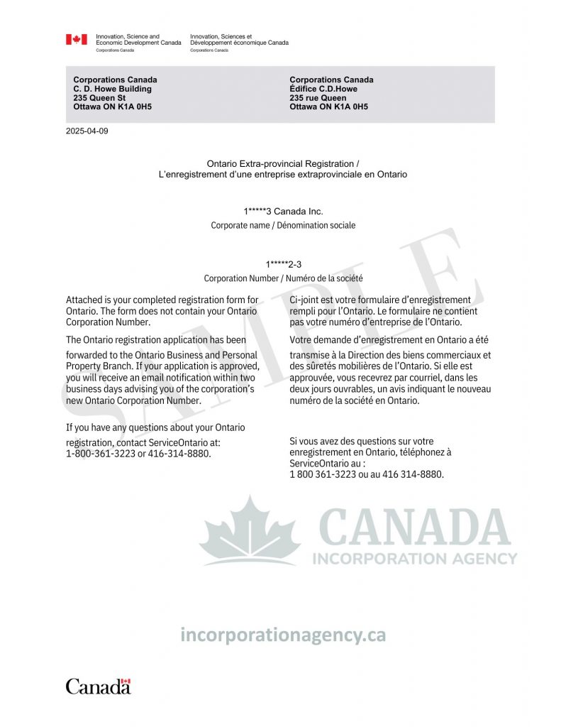 The paperwork and filings at Corporations Canada are administered by our team.
