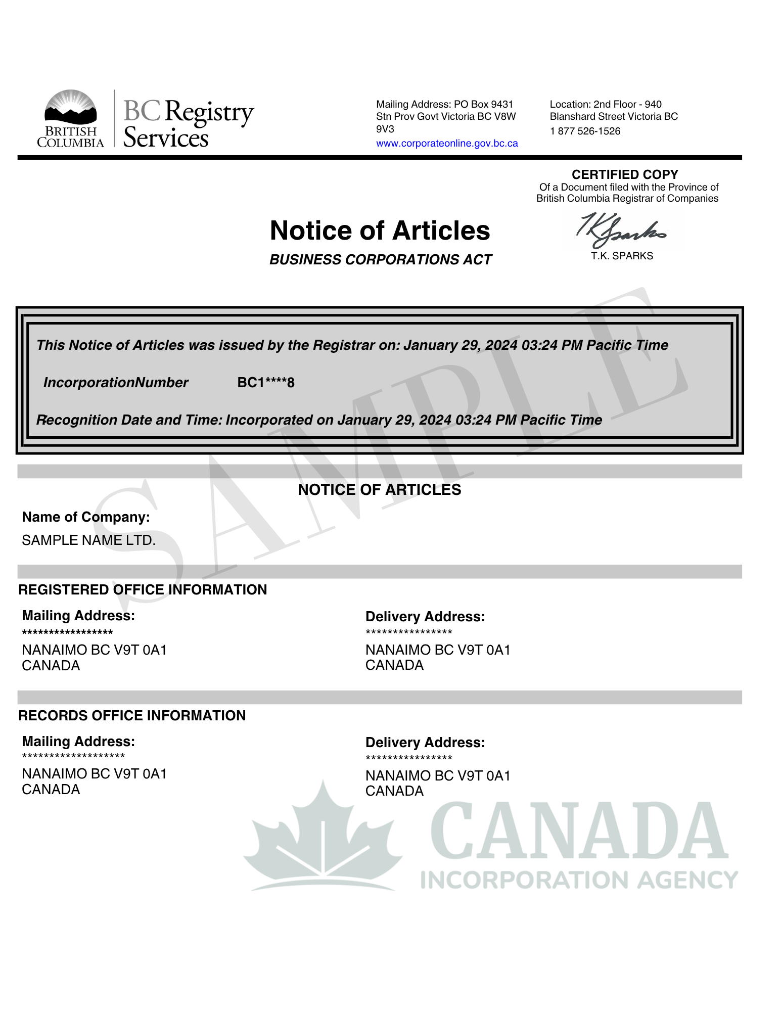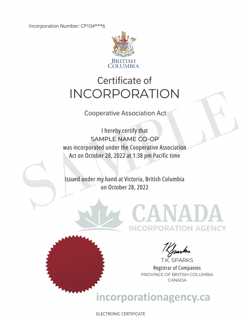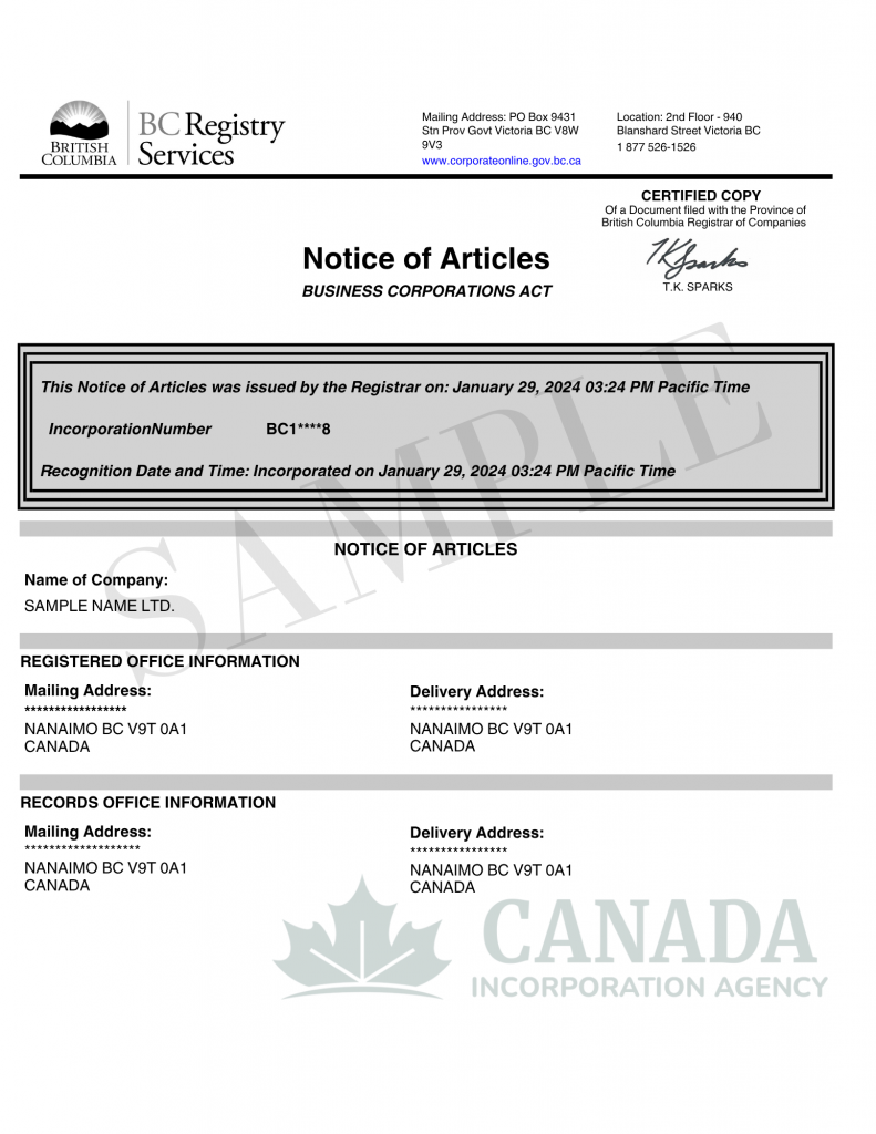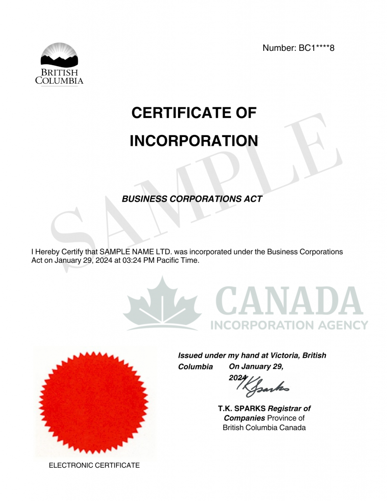 After incorporation, you will get your Certificate of Incorporation and Articles of Incorporation. You may then create a business bank account, register for taxes (such as GST/PST), and start operating lawfully.