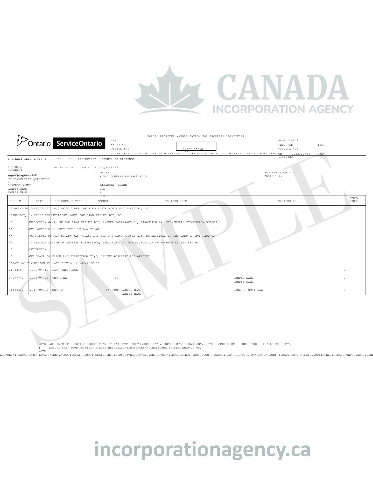 Our team retrieves the official land title record from the appropriate provincial or territorial land registry