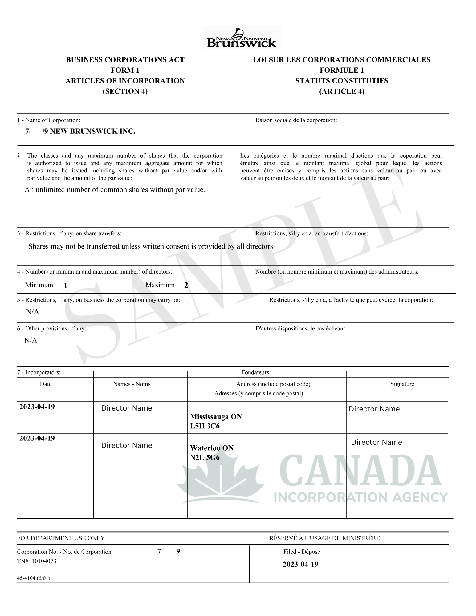 New Brunswick Non-Profit Corporation