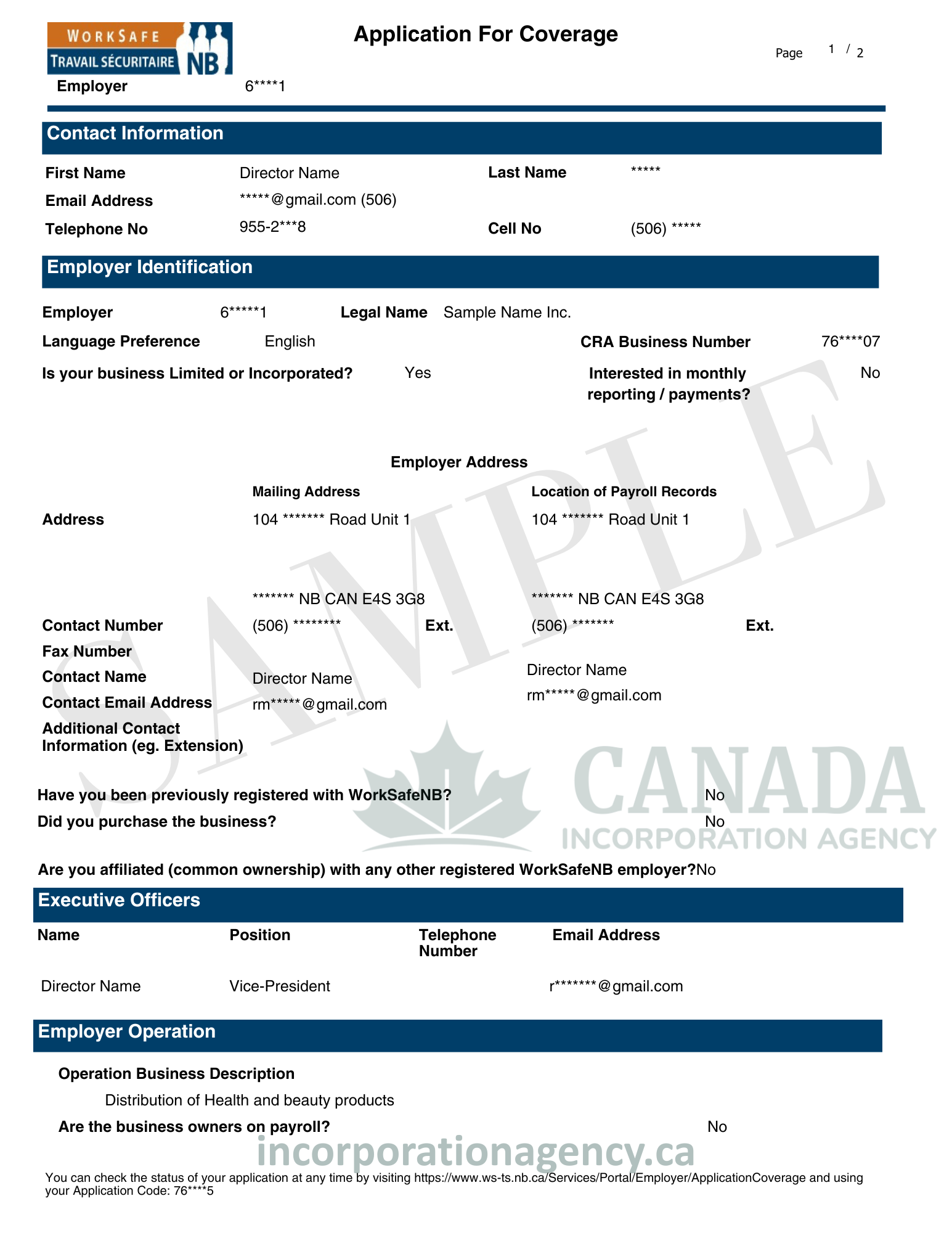 NEW BRUNSWICK WORKSAFENB REGISTRATION