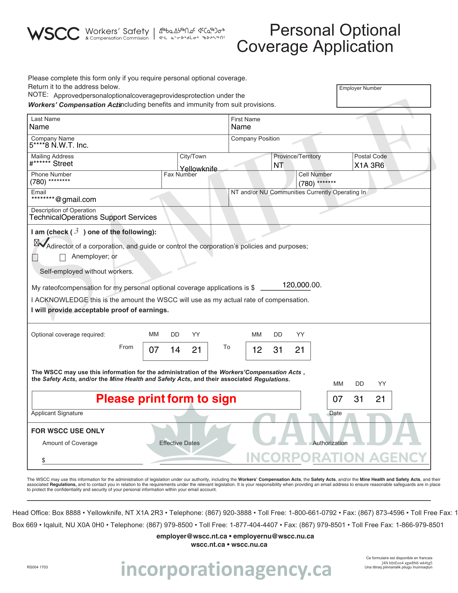 - Most Northwest Territories businesses are required to register for WSCC