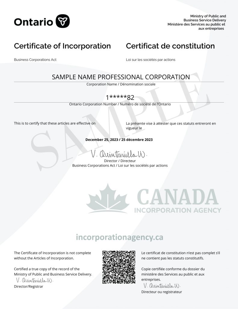 Ontario Professional Corporation Registration doesn’t have to be complicated. You’ll receive your official Certificate and Articles of Incorporation right in your inbox—often in just a few business hours.