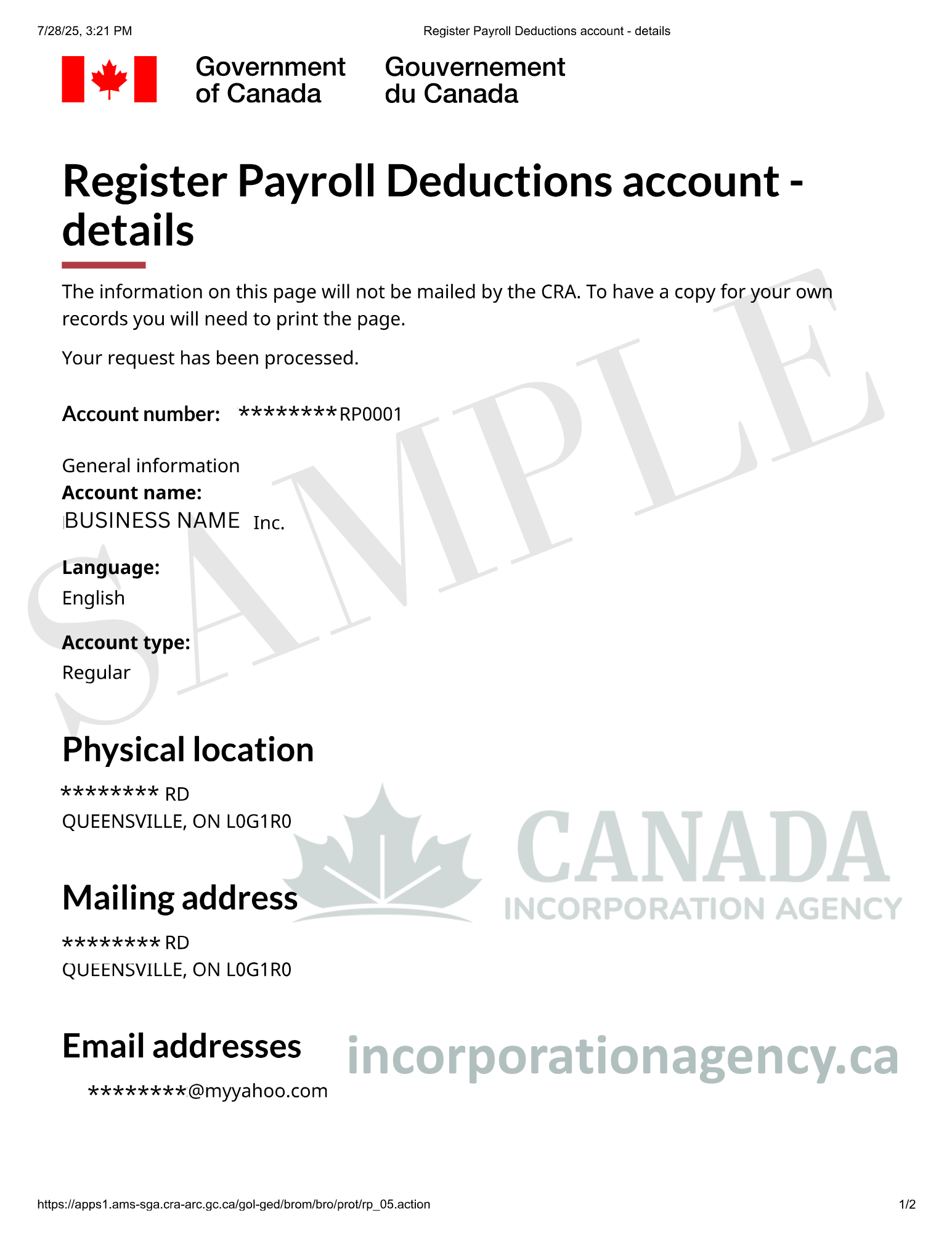 - We set up your business payroll accounts with the Canada Revenue Agency and any required provincial agencies.