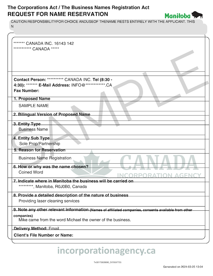 We recommended to reserve a domain name in your business name. If your domain name is taken by any domain reserving company or a competitor, it could be difficult to establish your brand and continue the business without a proper website. (example: www.yourbusinessname.ca)
