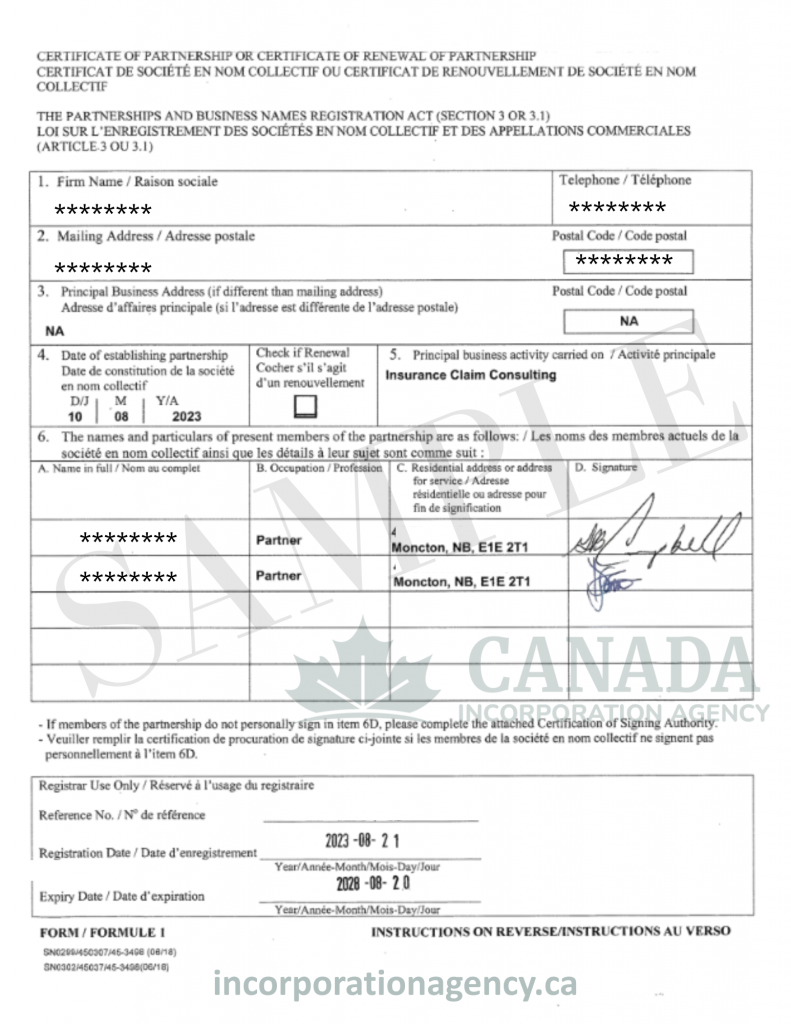 - Must be formally registered with the New Brunswick government