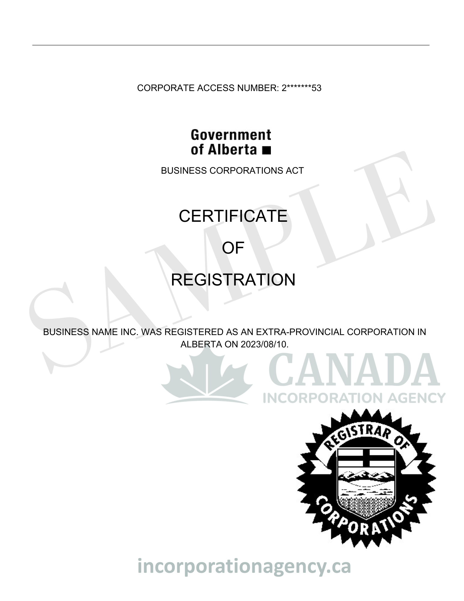 - Registered Agent Services: We provide agent-for-service representation if required in your selected province.