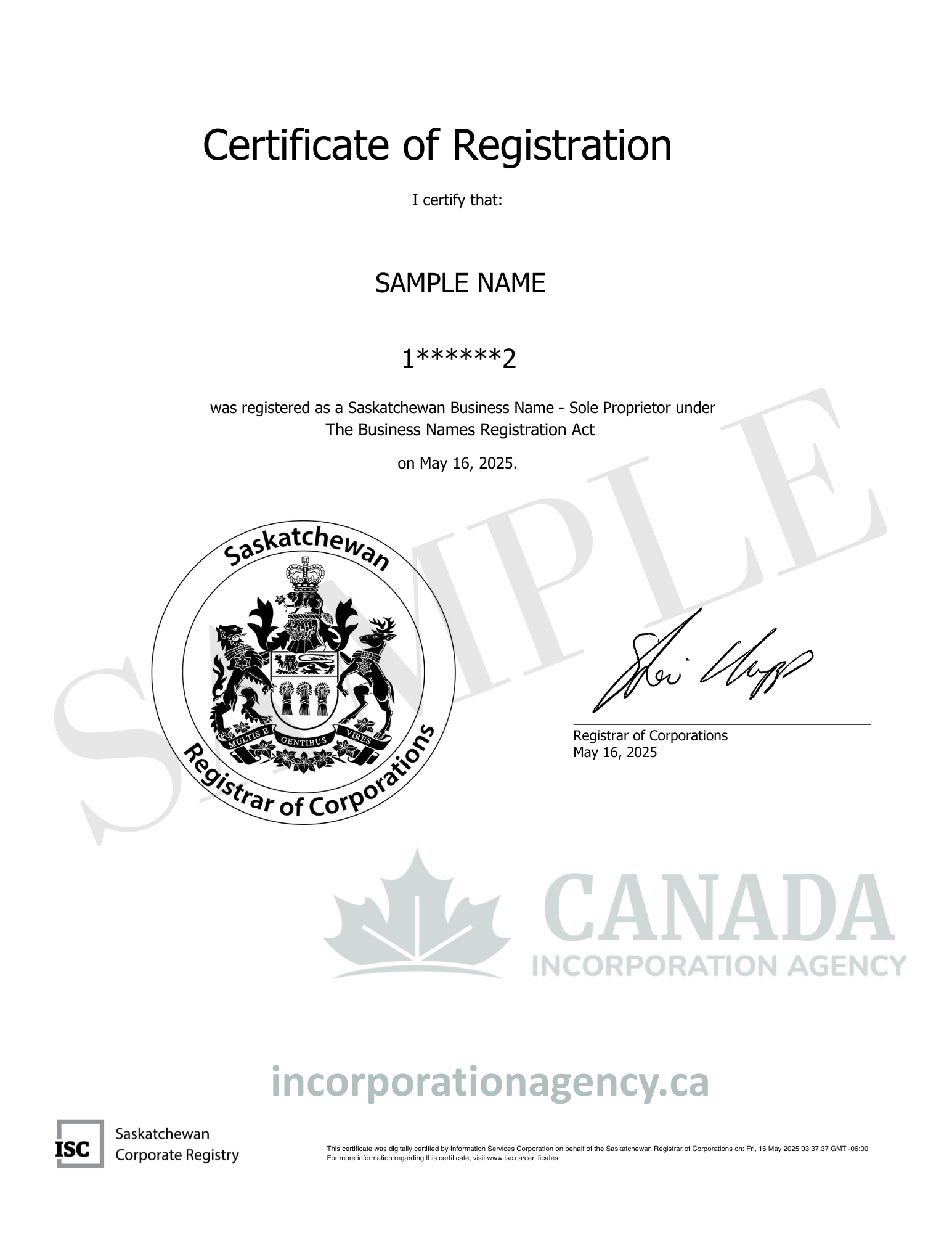 - Must be formally registered with the Saskatchewan government