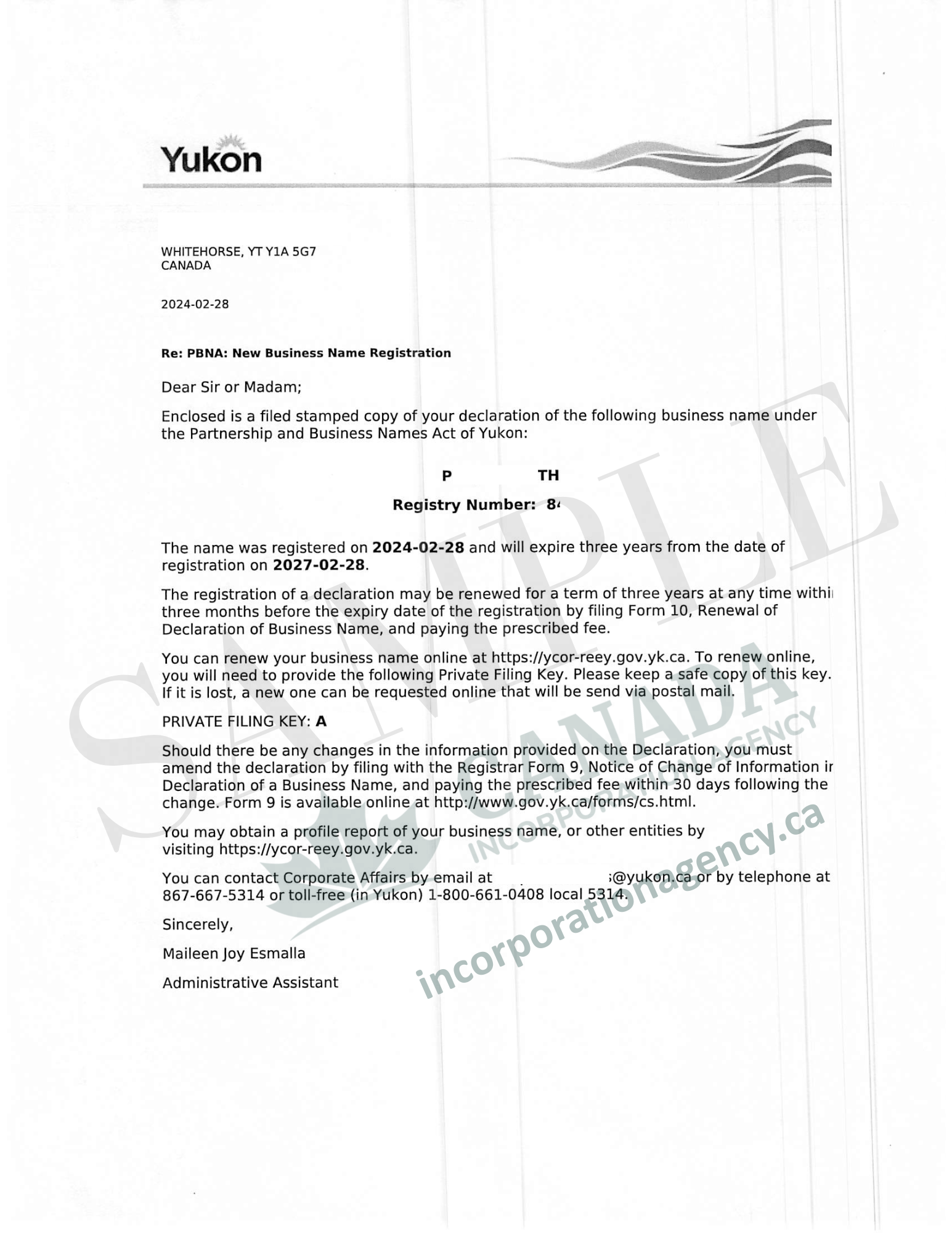 Registering a Trade Name or “Doing Business As” (DBA) in Yukon allows you to legally operate your business under a name that is different from your legal or corporate name. It’s a crucial step for branding, marketing, and public recognition. Whether you are a sole proprietor, a partnership, or a corporation, registering a Trade Name ensures your business name is compliant and protected.